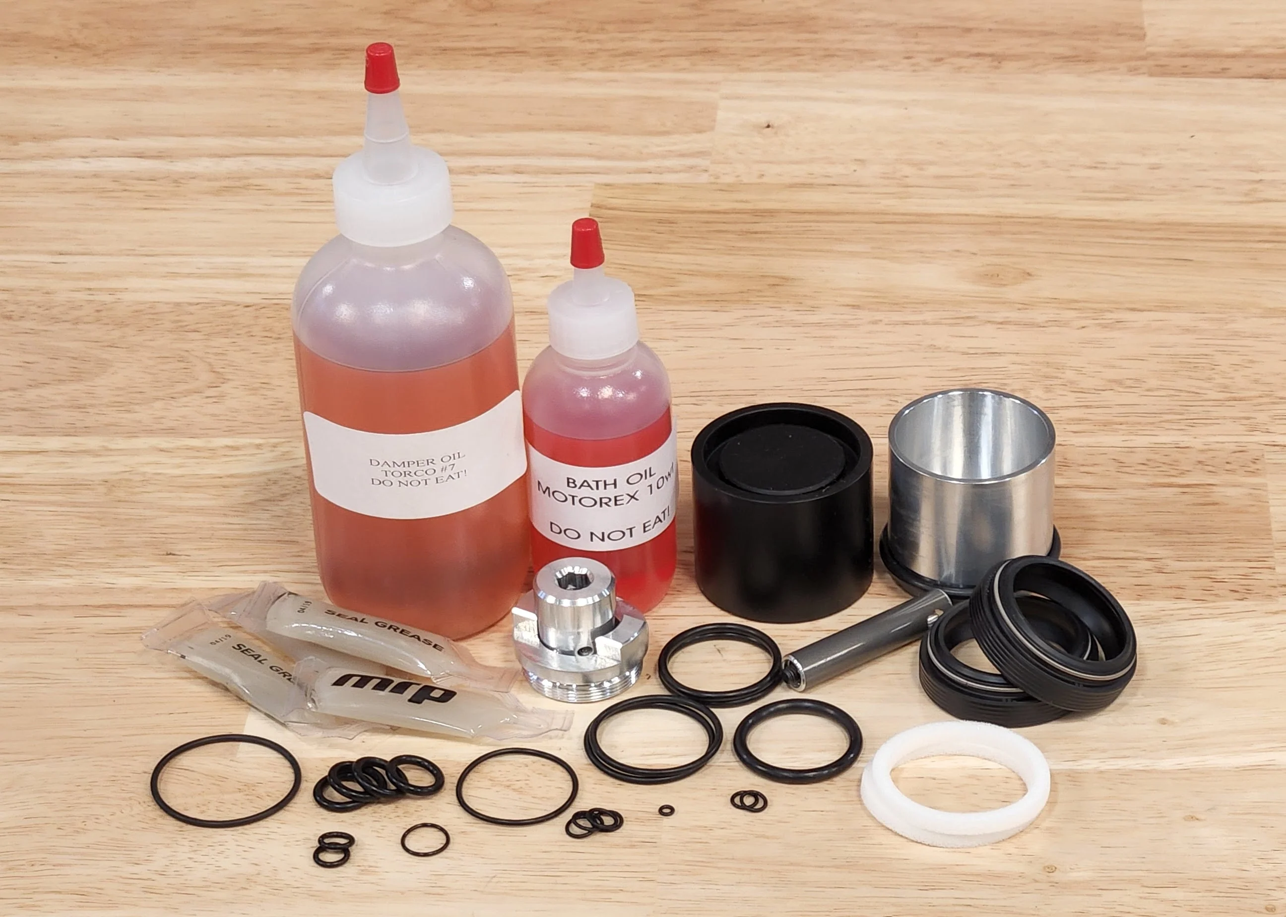 Wiper Seal Service Kits - Everything you need to service your 35mm fork's wiper seals. Bath oil, wiper seals, and wiper seal press tool. The DLX kit includes the wiper seal press tool while the refill only includes the seals and bath oil.